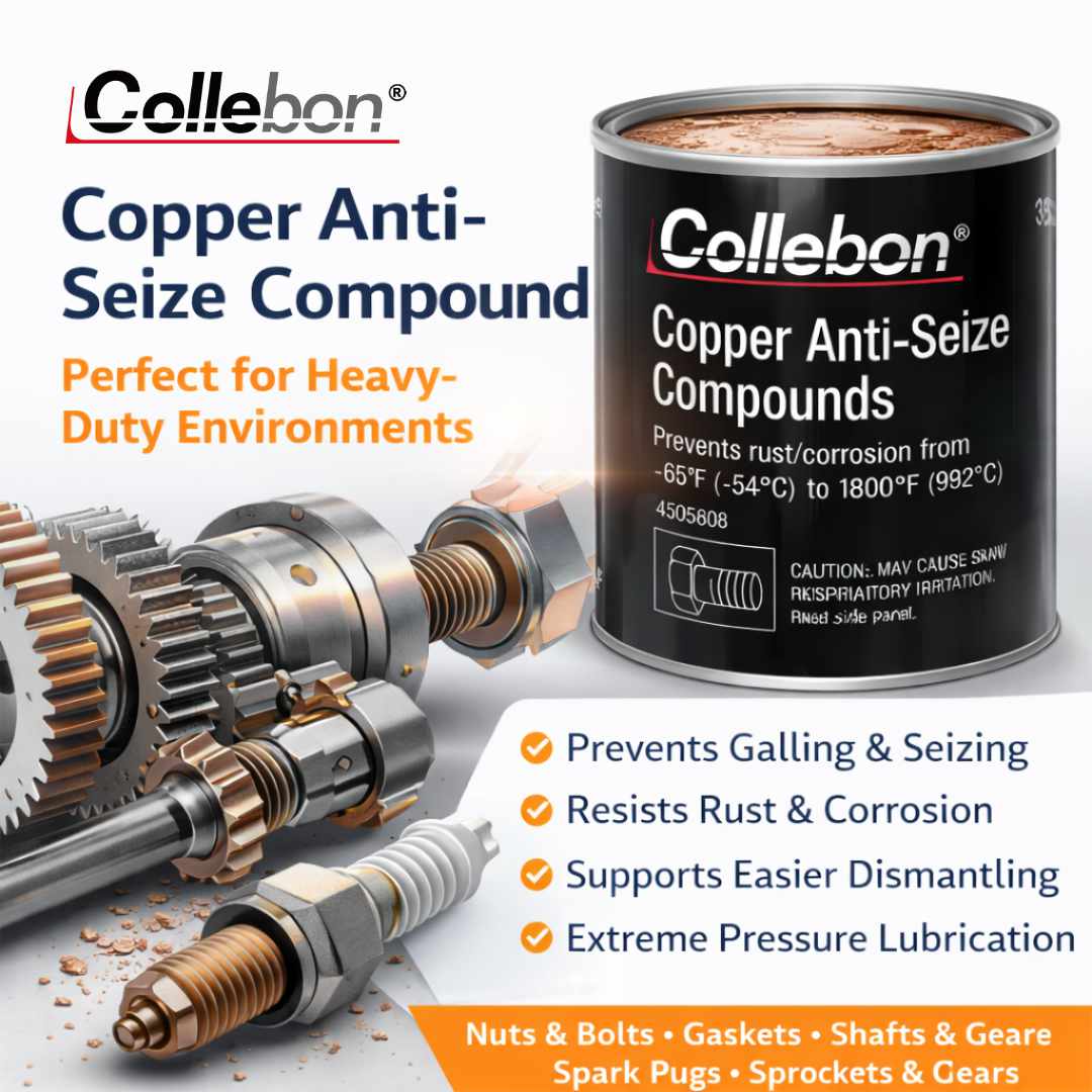 Collebon Copper Anti-Seize Compound is a high-performance assembly lubricant engineered for demanding marine, automotive, oilfield, construction, and heavy-duty mechanical environments. The copper-rich formulation creates a durable protective layer that prevents metal-to-metal seizure while maintaining smooth operation under high load and temperature conditions.