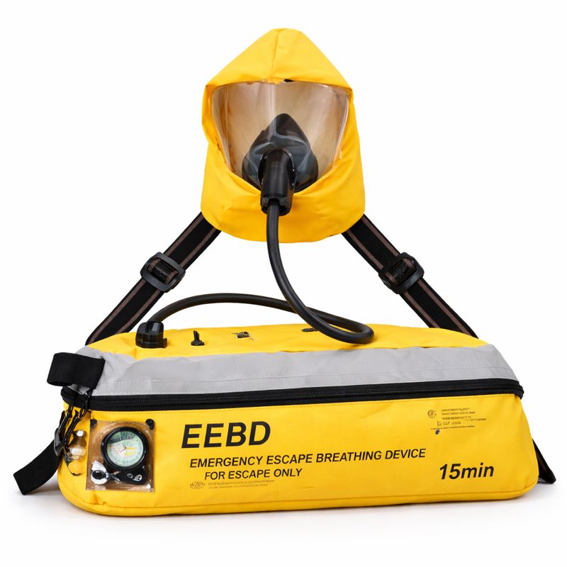 This self-contained breathing apparatus features a hood-type design with a clear visor, ensuring quick and effortless donning without the need for face-fit testing. The EEBD supplies breathable air from its independent air source, helping users maintain visibility and orientation while escaping to a safe zone.