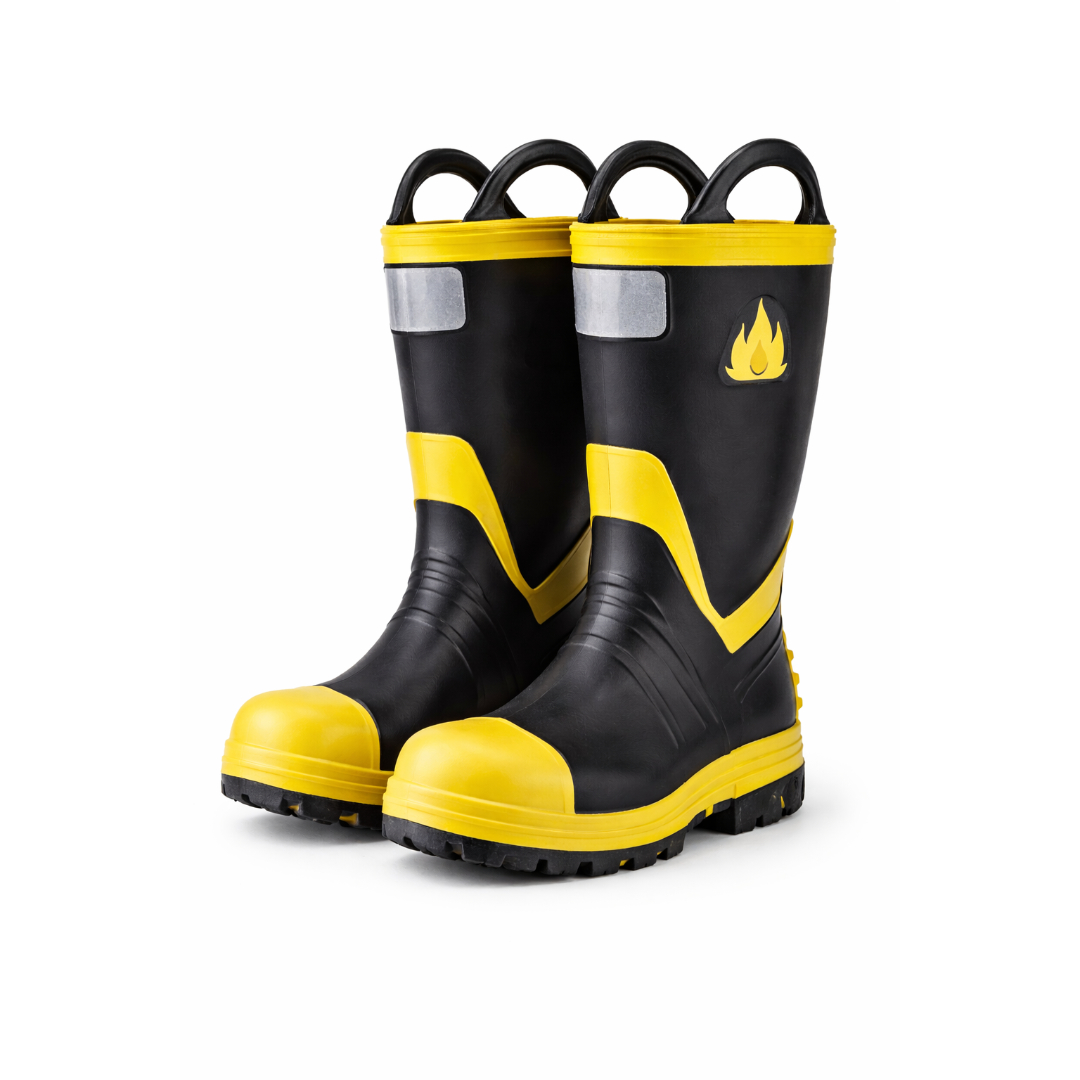 Constructed with a strong outer body and high-visibility detailing, the boot provides reliable protection while maintaining comfort during extended wear. The deep-tread sole offers enhanced grip and stability on slippery, uneven, or wet surfaces, making it suitable for fire scenes, industrial plants, shipyards, and outdoor operations.