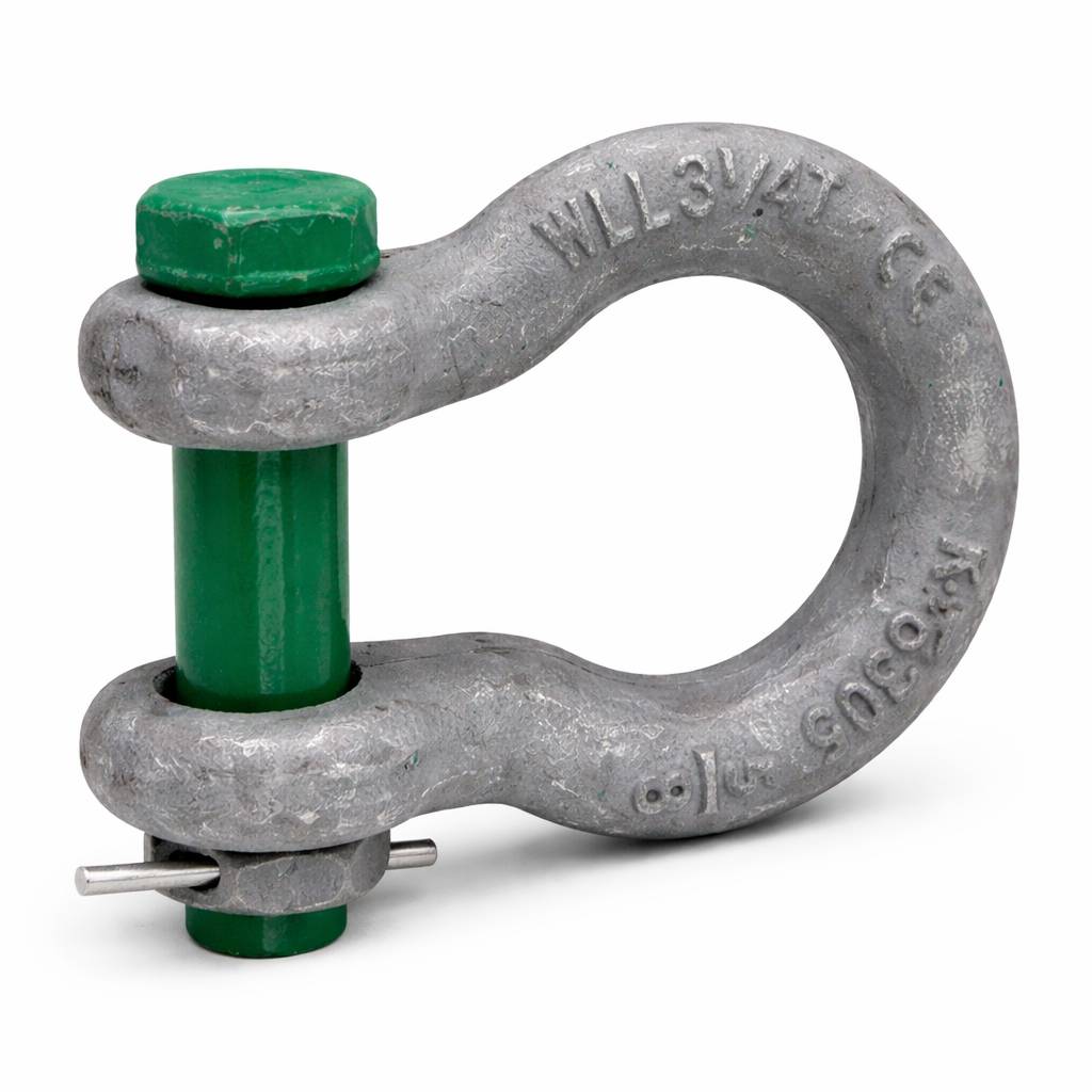 Bow Shackle with Green Pin – Heavy Duty Galvanized Steel, WLL 3/4 Ton | Lifting & Rigging