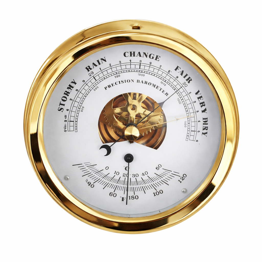 The Marine Barometer GL198-BO is a reliable nautical weather instrument used to measure atmospheric pressure changes, helping mariners anticipate weather conditions during navigation. Accurate barometric readings are essential for marine operations, and this analog barometer provides a dependable visual indication without the need for power or electronics.